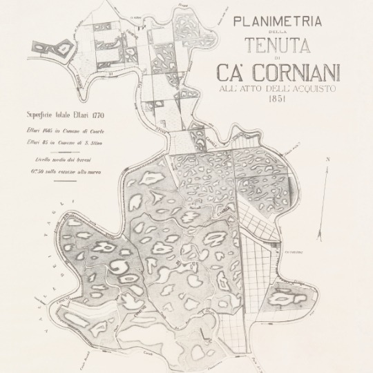 una innovativa idrovora per il territorio, stabile, che promette di mantenere all’asciutto tutta la proprietà. In effetti, in soli 30 anni la tenuta di Ca’ Corniani è stata interamente bonificata e resa fertile. Rispetto alle 17 famiglie presenti all’acquisizione, ora si contano migliaia di abitanti, impegnati nella bonifica e nelle coltivazioni.